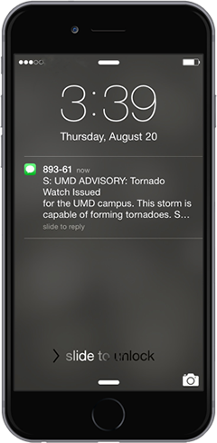 All UMD Students, faculty and staff members will automatically receive text messages to their cell phone and email notifications to their email address associated with their UMD directory account.